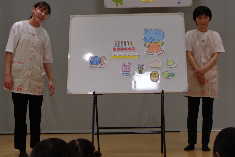 15日(木)に5月の誕生会を行いました。5月生まれのお友だちは、2人でした。どきどきした様子でしたが、ステージに出てきてくれましたよ!出し物では「みんなお誕生日!」というパネルシアターを楽しみました。大きなケーキのまわりにいろいろな動物たちが集まってきてみんなで一緒にお誕生日をお祝いするお話でした☆5月生まれのお友だち、お誕生日おめでとう♪